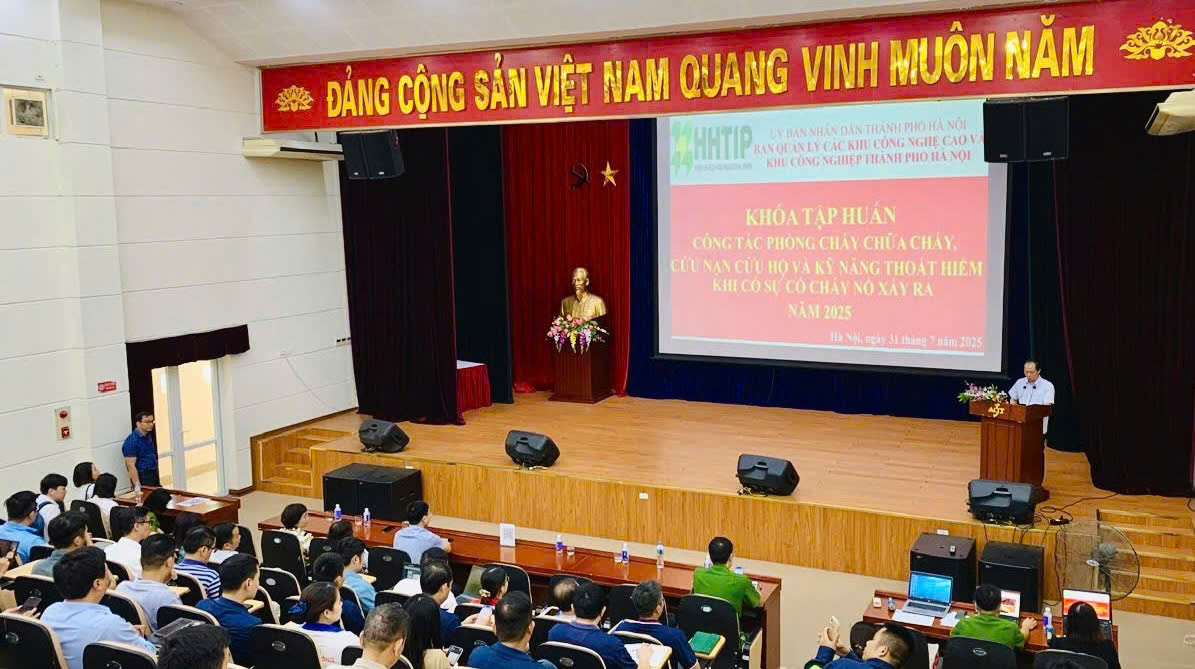 Nhằm nâng cao nhận thức, kỹ năng thực hành về phòng cháy chữa cháy (PCCC), cứu nạn cứu hộ (CNCH) và thoát hiểm cho các cán bộ, công nhân viên trong các khu công nghiệp, khu công nghệ cao trên địa bàn thành phố Hà Nội, Ban Quản lý các khu công nghệ cao và khu công nghiệp thành phố Hà Nội ngày 31/07/2025 đã tổ chức khóa tập huấn chuyên đề năm 2025 với sự tham gia của hơn 200 học viên.