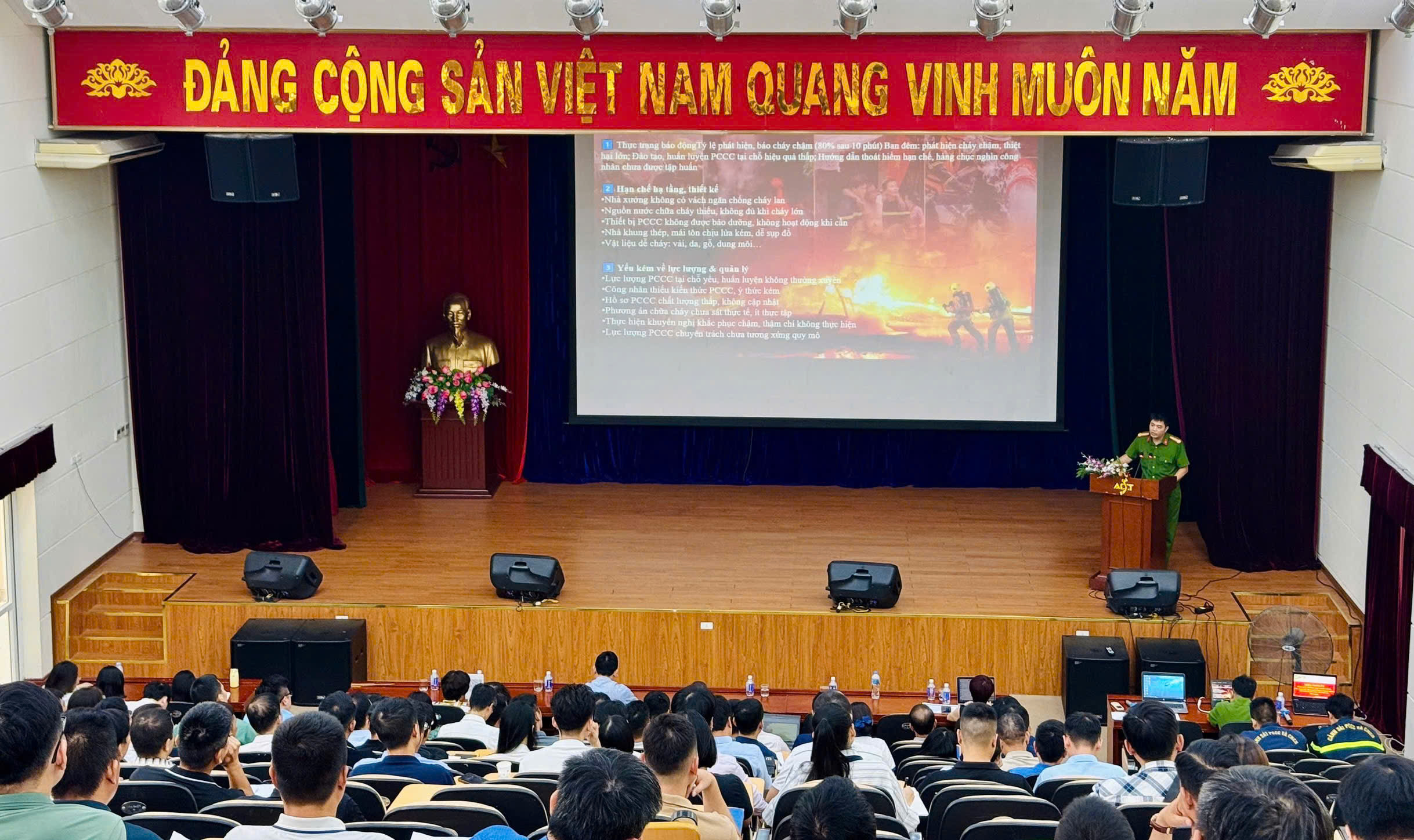 Với bề dày kinh nghiệm thực tiễn, Trung tá Vũ Hoài Nam đã chia sẻ nhiều kiến thức quan trọng, thiết thực trong công tác phòng chống cháy nổ và kỹ năng xử lý tình huống khẩn cấp, cứu người an toàn trong các môi trường rủi ro cao. Nội dung tập huấn tập trung chủ yếu vào các nội dung như :
