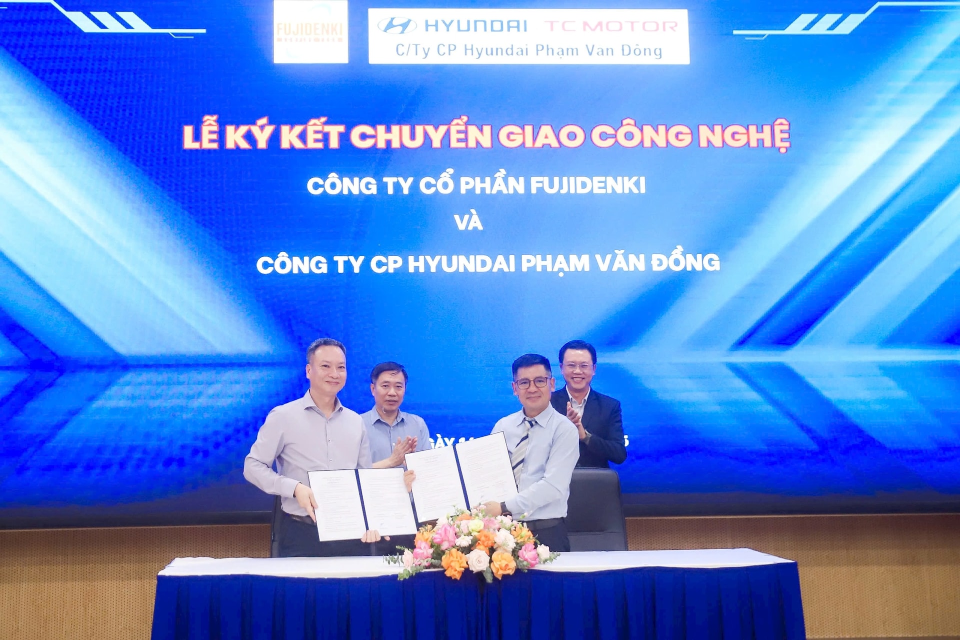 Hợp đồng chuyển giao công nghệ HHO-GAS giữa Công ty Cổ phần Fujidenki và các đối tác: Tập đoàn Thành An, Công ty Cổ phần Hyundai Phạm Văn Đồng, và Công ty TNHH MTV Hyundai An Khánh đã mở ra hướng tích hợp công nghệ HHO-GAS vào dịch vụ bảo dưỡng ô tô, không chỉ nâng cao hiệu suất kỹ thuật mà còn thúc đẩy xu hướng xanh hóa ngành giao thông, giảm khí thải và bảo vệ môi trường.