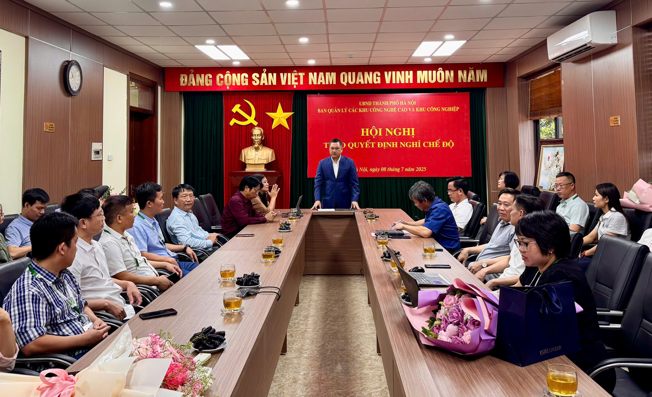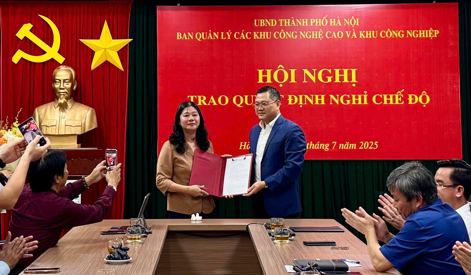 Ngày 08/7, thừa ủy quyền của UBND thành phố Hà Nội, Ban Quản lý các Khu công nghệ cao và Khu công nghiệp thành phố Hà Nội tổ chức gặp mặt, trao quyết định nghỉ hưu đồng chí Phan Thị My, Phó Trưởng ban Thường trực Ban Quản lý các Khu công nghệ cao và Khu công nghiệp TP Hà Nội.